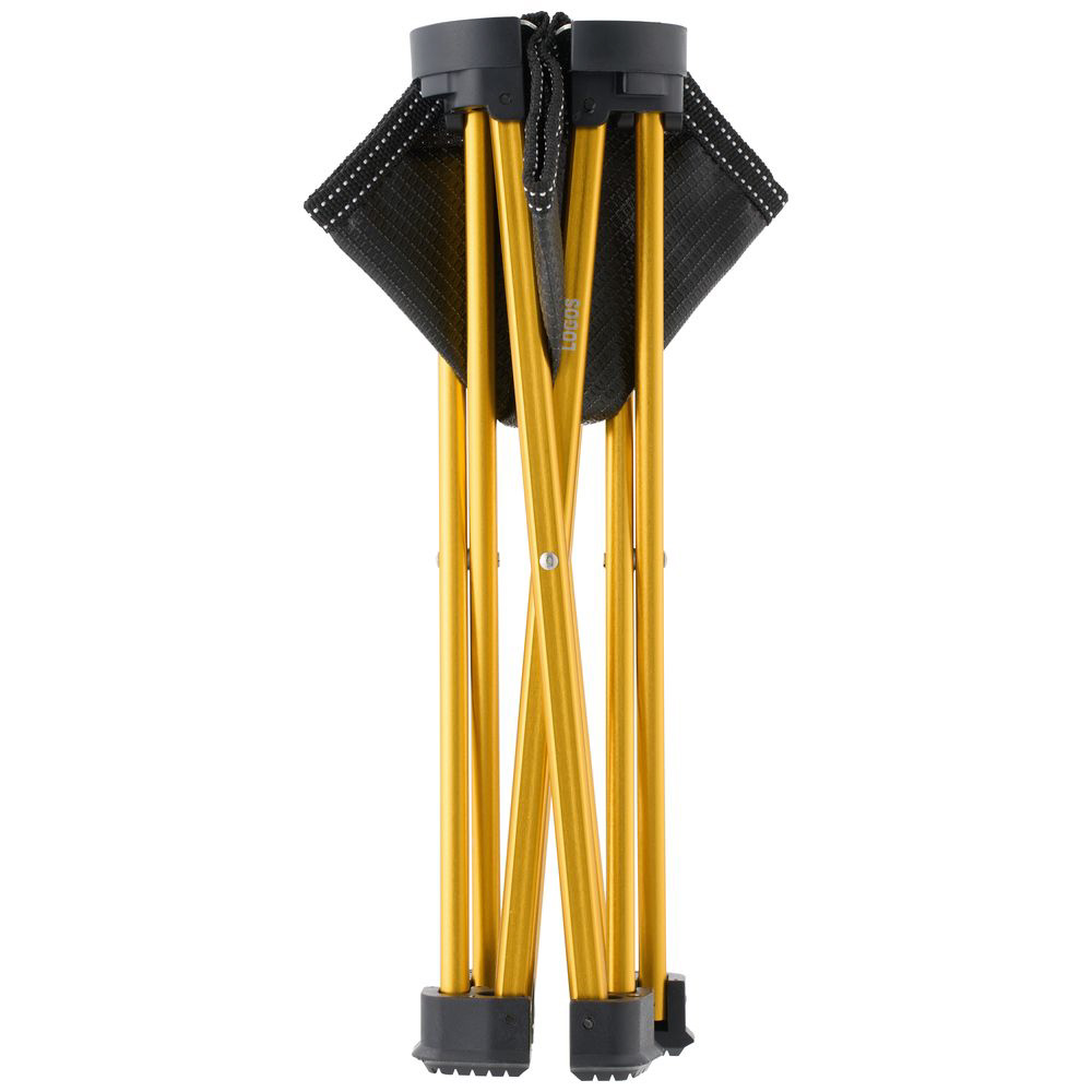 フレームには7075超々ジュラルミンを採用し、わずか約300gと超軽量ながらも耐荷重約120kgと高い強度を実現した、超軽量&タフな折りたたみチェア。