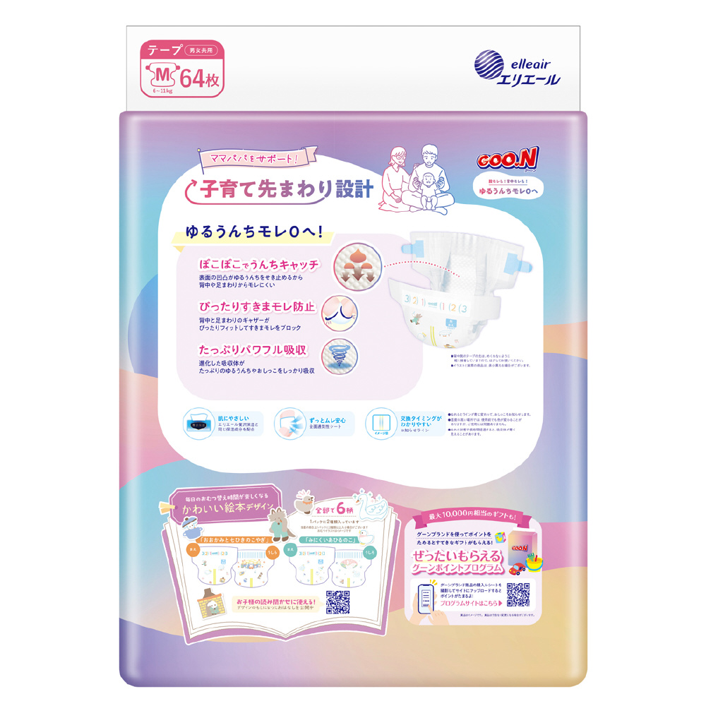 【ケース販売】グーン ゆるうんちモレ0へ Mサイズ 64枚×4