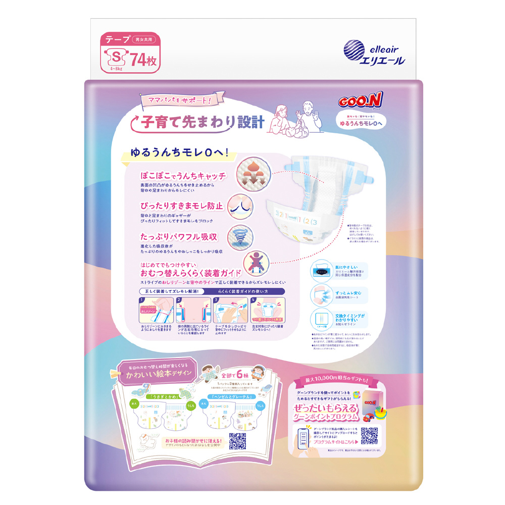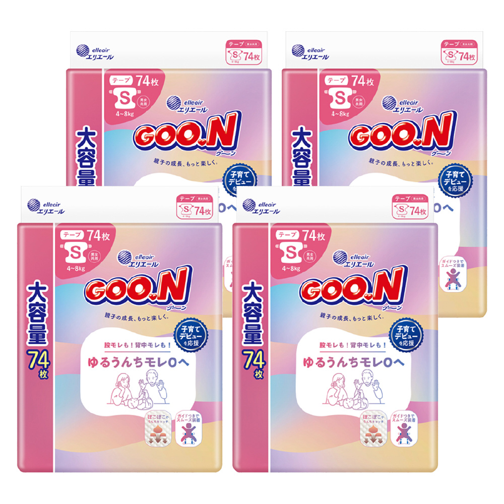 【ケース販売】グーン ゆるうんちモレ0へ Sサイズ 74枚×4