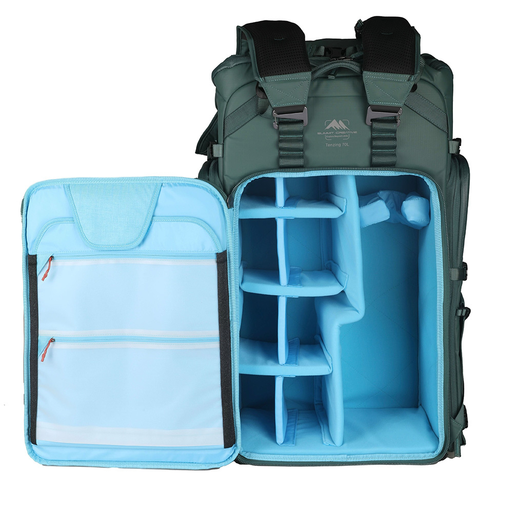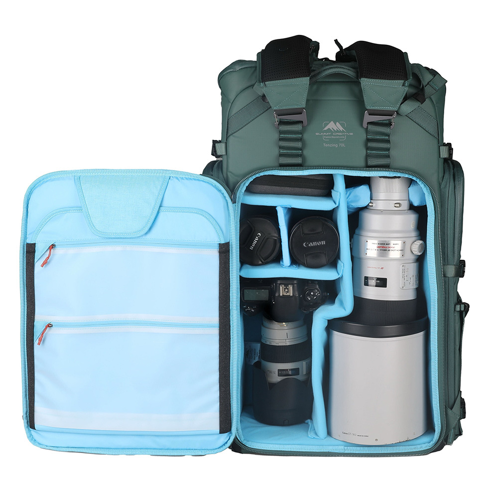 超望遠レンズや、大量の機材を確実かつ快適に運搬可能な大容量70Lリットル