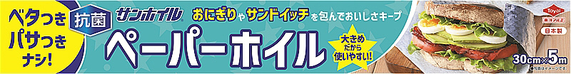 アルミはくに吸湿紙を貼り合わせていますので、サンドイッチやおにぎりのベタつきやパサつきを防ぎます。