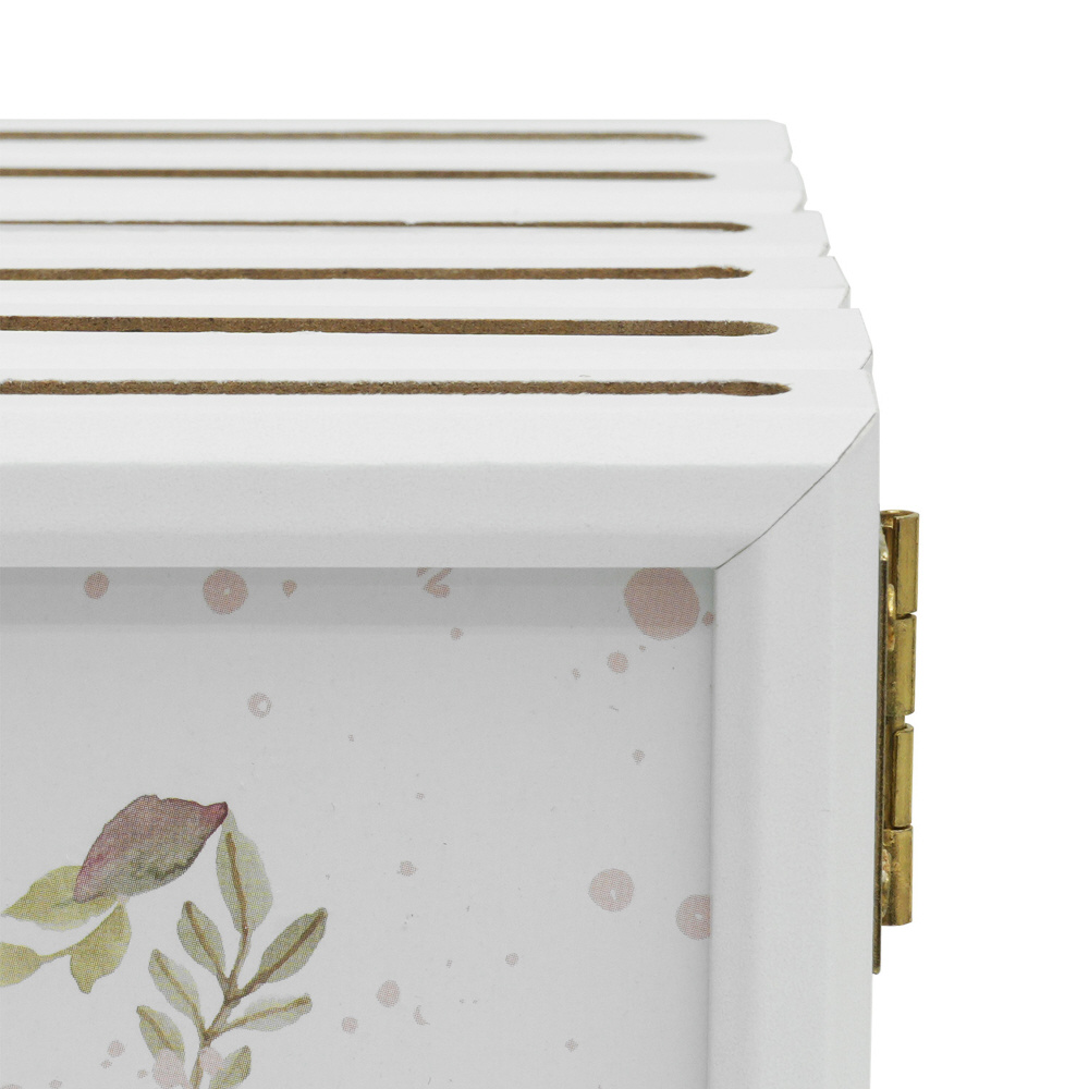 フレーム上部のスリットへチェキ、ハーフサイズプリントを挟んだ透明な板を差し込むようにして収納し、表裏の合計12面に飾ることができます。使わないときには折りたたんでコンパクトに保管できます。写真以外にも切り抜きや押し花など、透け感を活かした飾り方も楽しめます。
