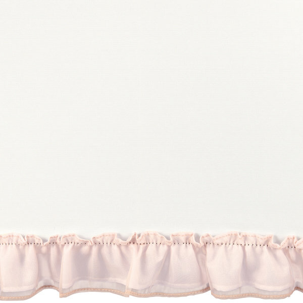 オーガンジーのフリルを重ね、程よくボリュームのあるシルエットに仕上げました。ゴージャスになりすぎない、持ちやすいベーシックカラーで軽やかな印象の日傘。持ち手には上品なゴールド合皮を採用し、大人らしい品の良さと可愛らしさを両立した一本です。