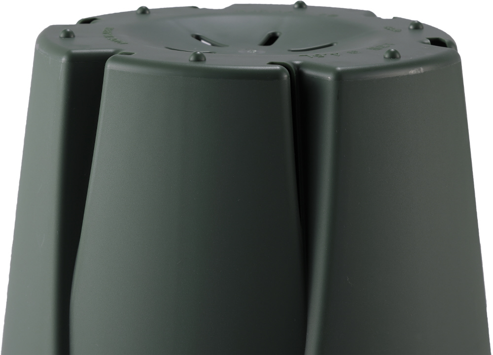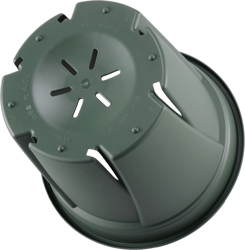 地面と鉢底の間に隙間ができる足付き構造。剥がしやすい専用ラベル付き