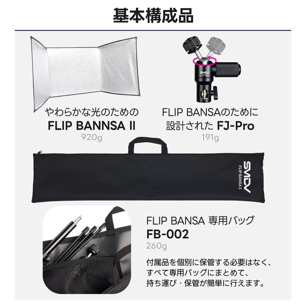 構造剛性と操作性を高め、歪みや変形を抑えた設計の大型リフレクター。安定した反射面により正確なライティングコントロールをサポート。SMDV Flip Bansa 2 リフレクター(フリップ バンサ 2)