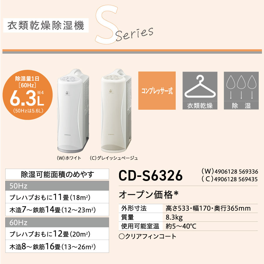 衣類乾燥除湿機 Sシリーズ ホワイト CD-S6326-W [コンプレッサー方式 /木造8畳まで /鉄筋16畳まで]