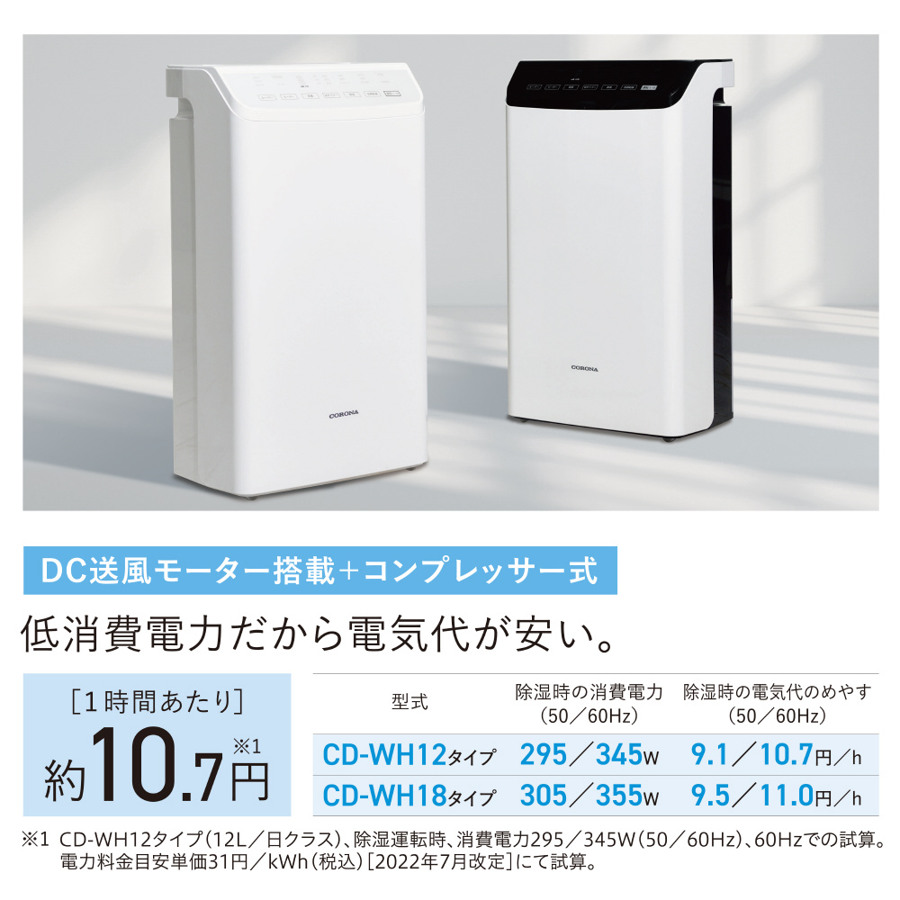 衣類乾燥除湿機 WHシリーズ クリスタルブラック CD-WH1826-K [コンプレッサー方式 /木造23畳まで /鉄筋45畳まで]