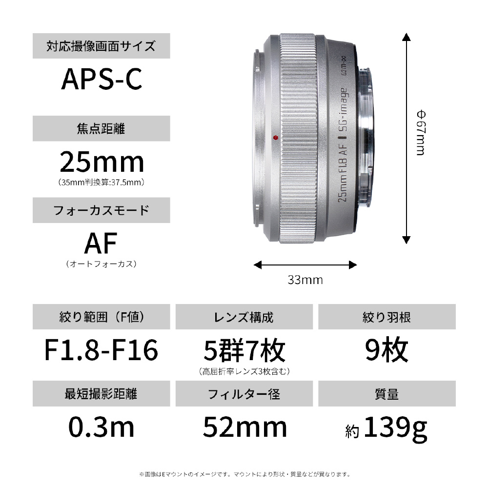 SG-image AF 25mm F1.8 Silver Limited ソニーEマウント APS-C [ソニーE /単焦点レンズ]