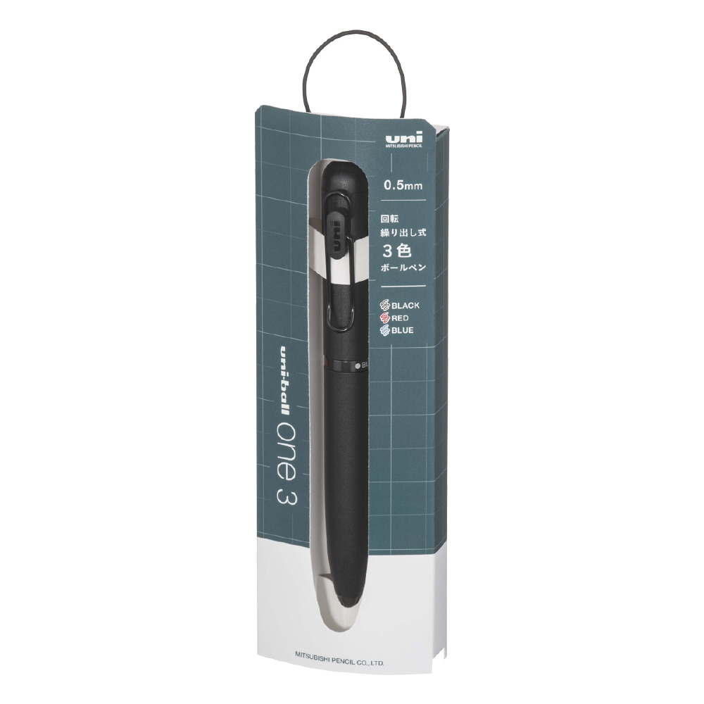 黒、赤、青のスタンダードな3色を搭載し、シンプルでストレートな回転繰り出し式のボディで、手帳に合わせて使うなど持ち運びもしやすい1本となっております。