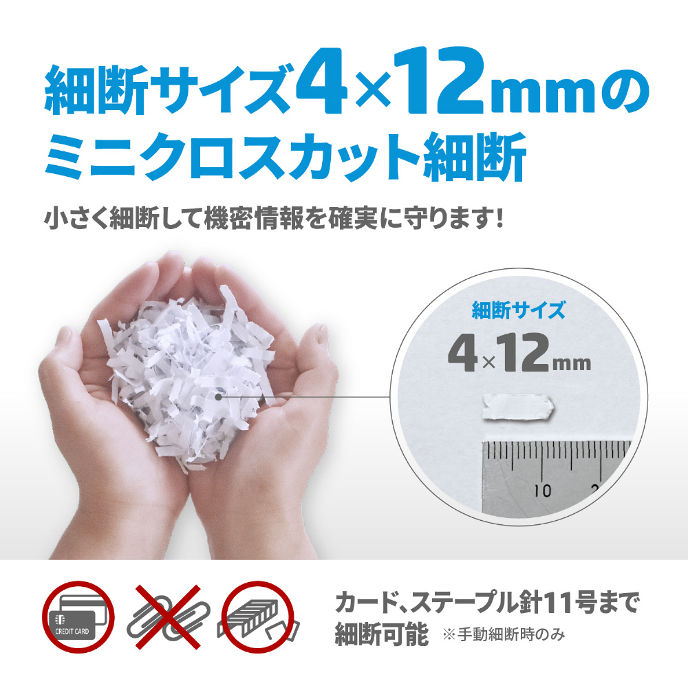 ミニクロスカット4x1mm 自動細断最大給紙枚数120枚 手差し時最大細断枚数8枚