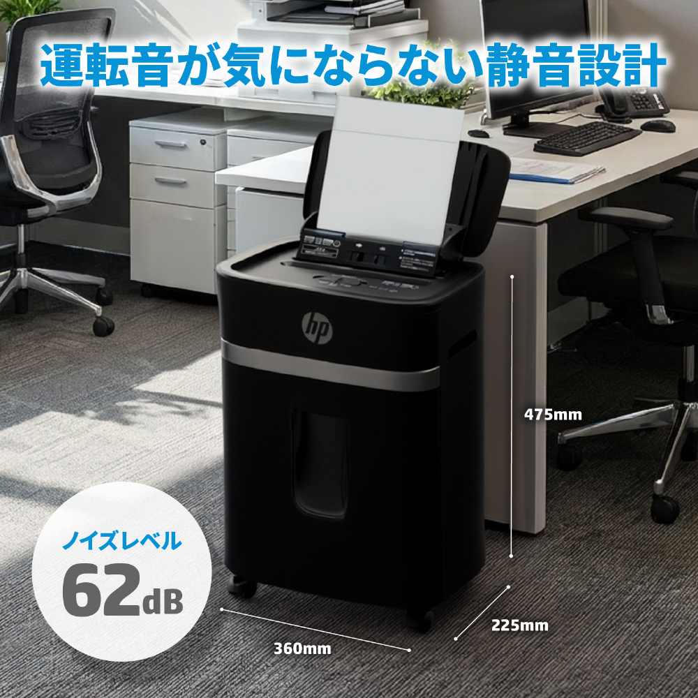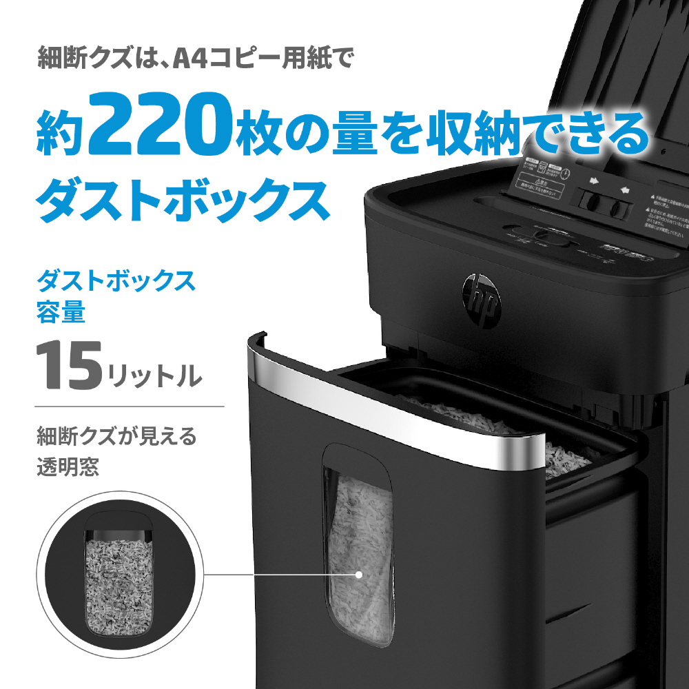 パーソナルサイズのHPオートフィードシュレッダー 自動細断120枚&手差し細断8枚 大量収納約220枚(A4サイズコピー用紙換算) 安心の12ヶ月保証付き