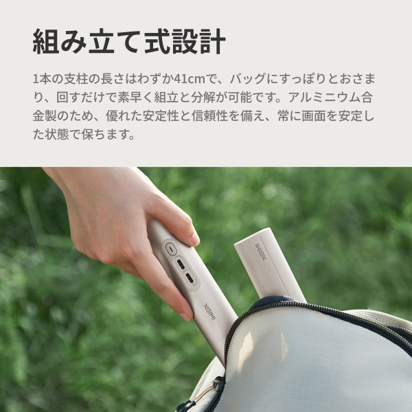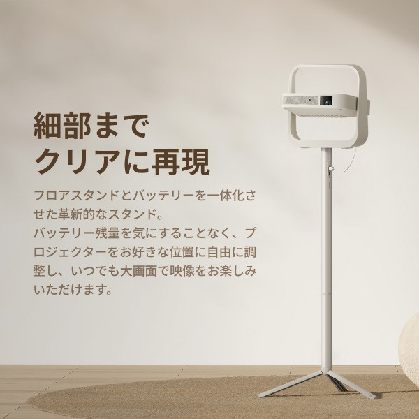 ■ 2-in-1一体型イノベーションスタンド フロアスタンドとモバイルバッテリー機能を一体化。 設置の自由度と電源確保を同時に実現しました。 電源残量を気にすることなく、 場所を選ばず大画面投影をお楽しみいただけます。