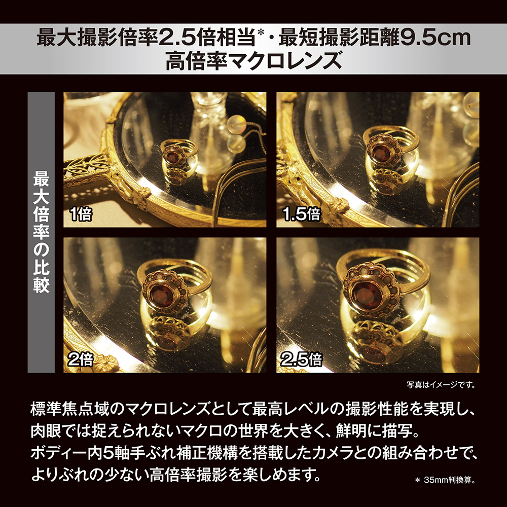 クラス最高レベルの最大撮影倍率2.5倍(35mm判換算)