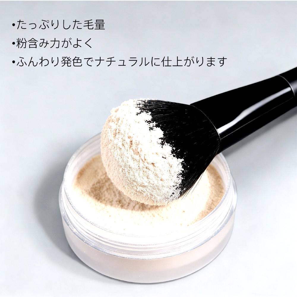 ■「革新的なデザイン&耐久性のある素材」ブラシの柄は独自の先端人間工学デザインを採用して、持ちやすさが向上し、デスクに置いた際も転がりにくい。毛には厳選された高品質ナイロン繊維を使用しており、品質が優れ、豊富な毛量で、触感は羽毛のように柔らかく肌に刺さらず、しっかりと粉末をとらえて自然にのせられる。メイクがより繊細でフィット感抜群です。アルミ管でブラシヘッドは補強されており、長期間使用しても変形しにくく、耐久性に優れている。全体的にシンプルなブラックデザインで、質感が高く、使い心地の良さと耐久性を両立している。