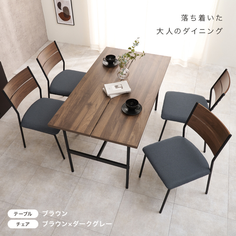 ダイニング5点セット (幅135cmテーブル&肘無しチェア4脚) 机:ブラウン×椅子:ブラウン×ダークグレー LT-3204BR-05DGY-5S