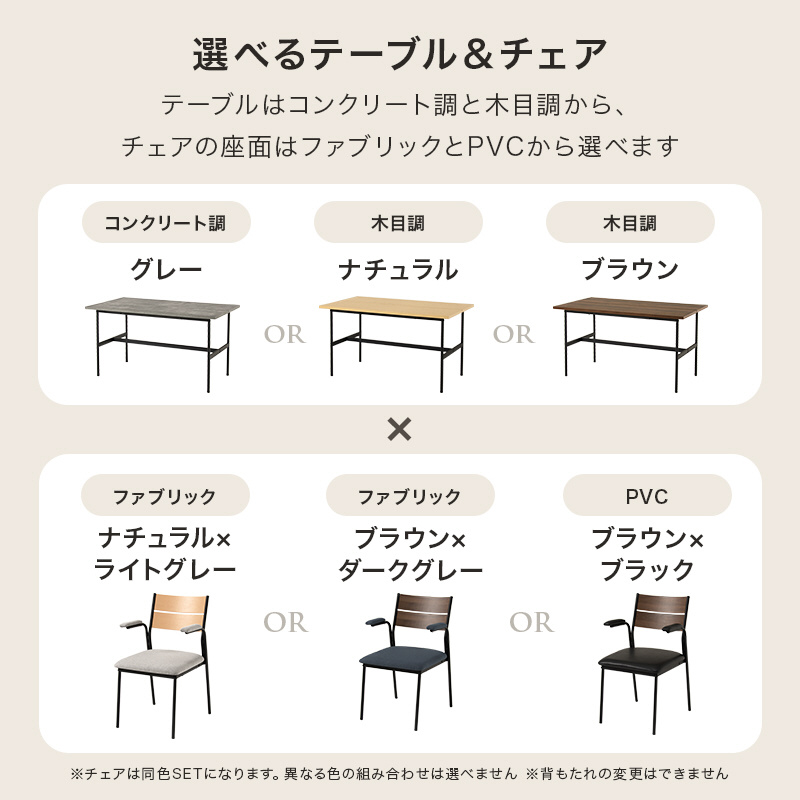 ダイニング5点セット (幅135cmテーブル&肘付きチェア4脚) 机:グレー×椅子:ブラウン×ダークグレー LT-3204MGY-06DGY-5S