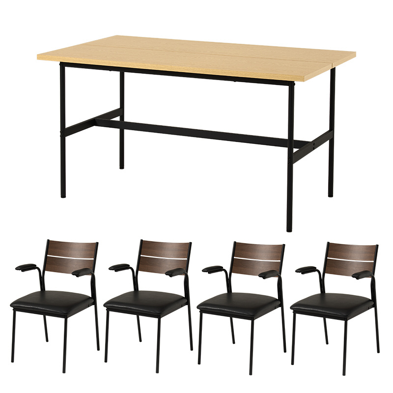 ダイニング5点セット (幅135cmテーブル&肘付きチェア4脚) 机:ナチュラル×椅子:ブラウン×ブラック LT-3204NA-06PBK-5S