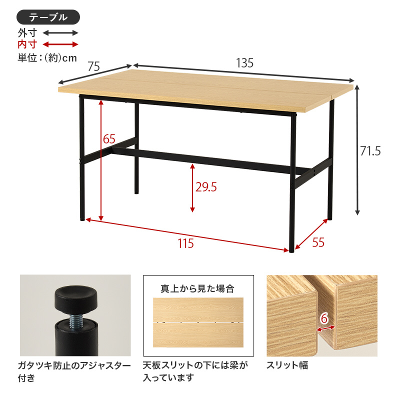 ・天板:合成樹脂化粧繊維板(メラミン樹脂)