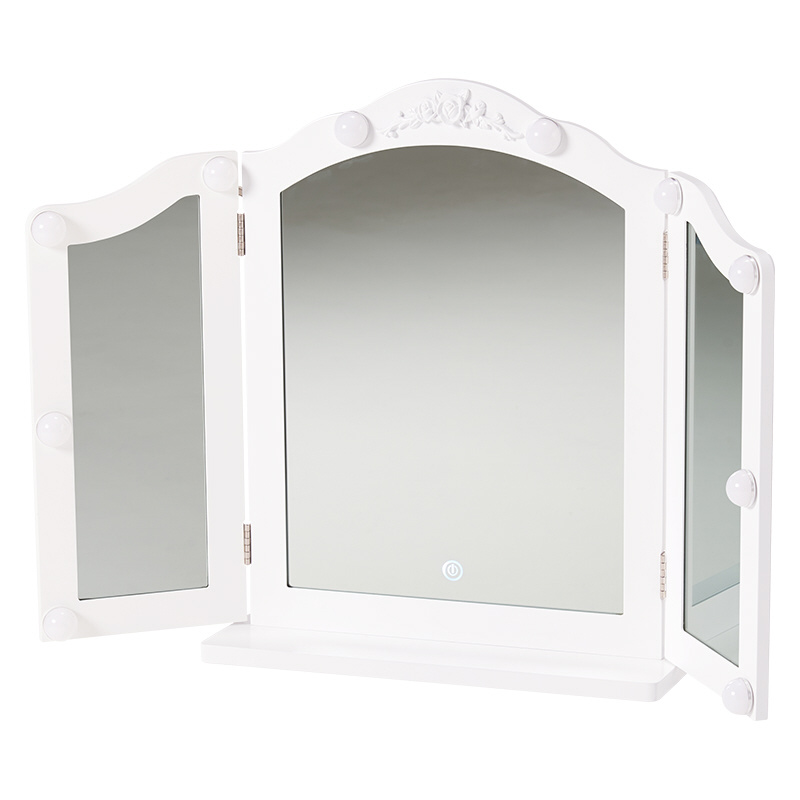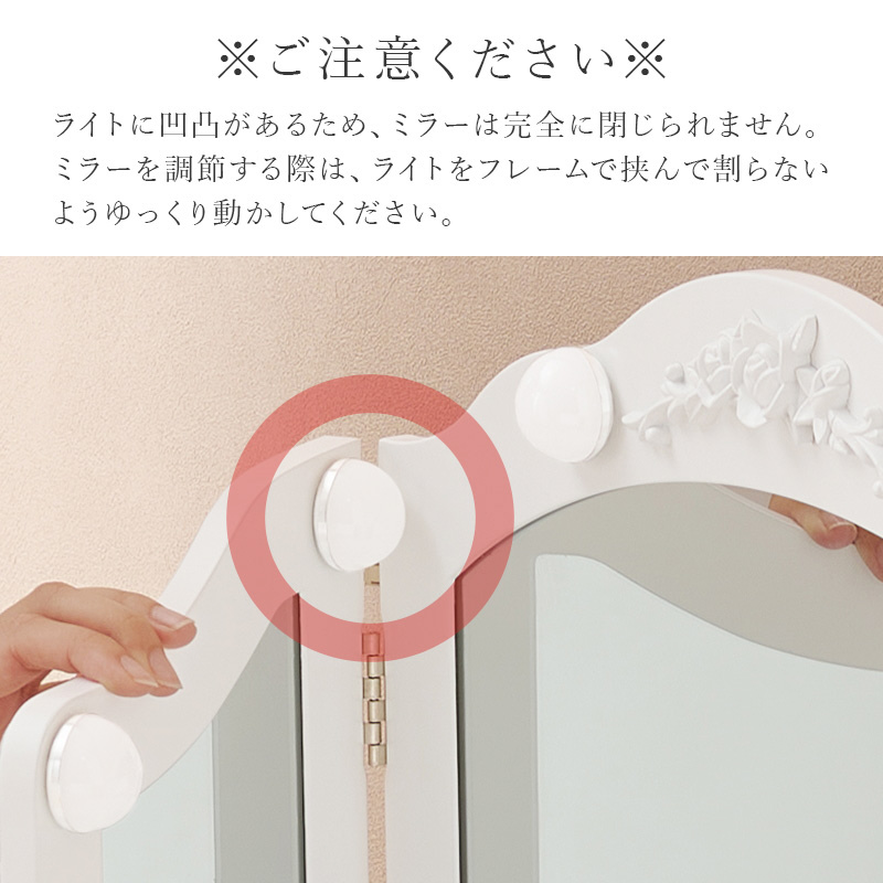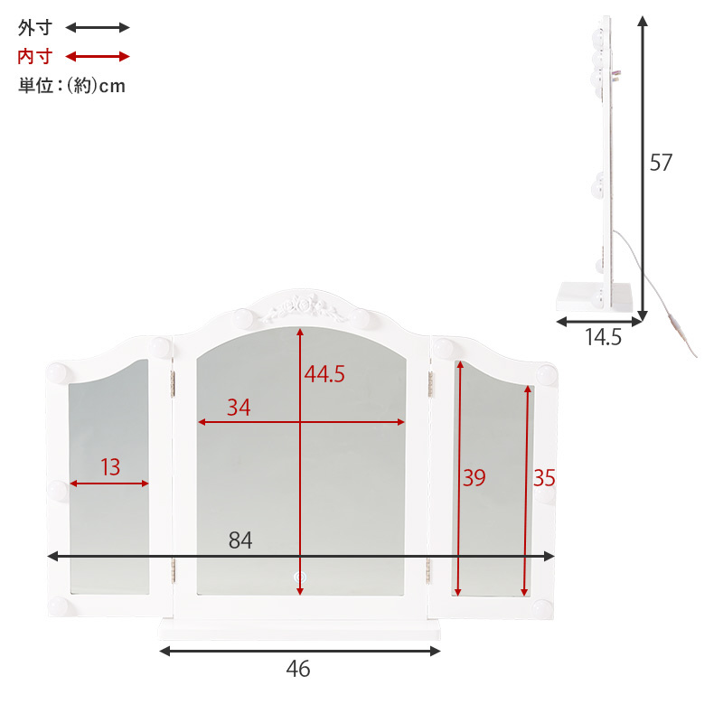 卓上ミラー ※三面鏡、LEDライト付き(約 W84×最大D27×H57cm) MD-6698-WH