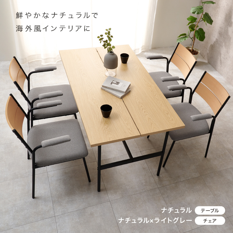 ダイニング5点セット (幅135cmテーブル&肘付きチェア4脚) 机:ナチュラル×椅子:ナチュラル×ライトグレー LT-3204NA-06LGY-5S