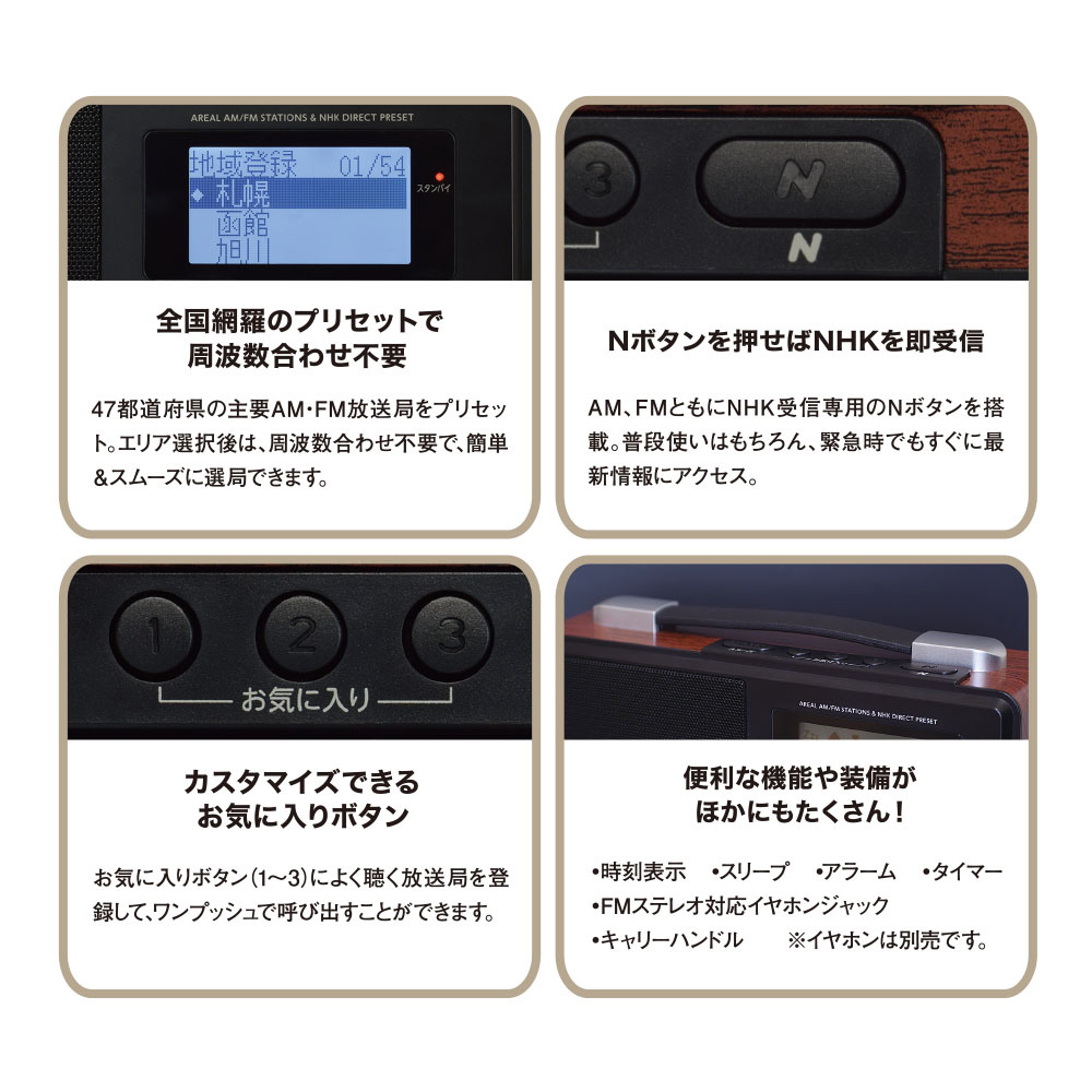 Nボタンを押せばNHKを即受信できるポータブルラジオ