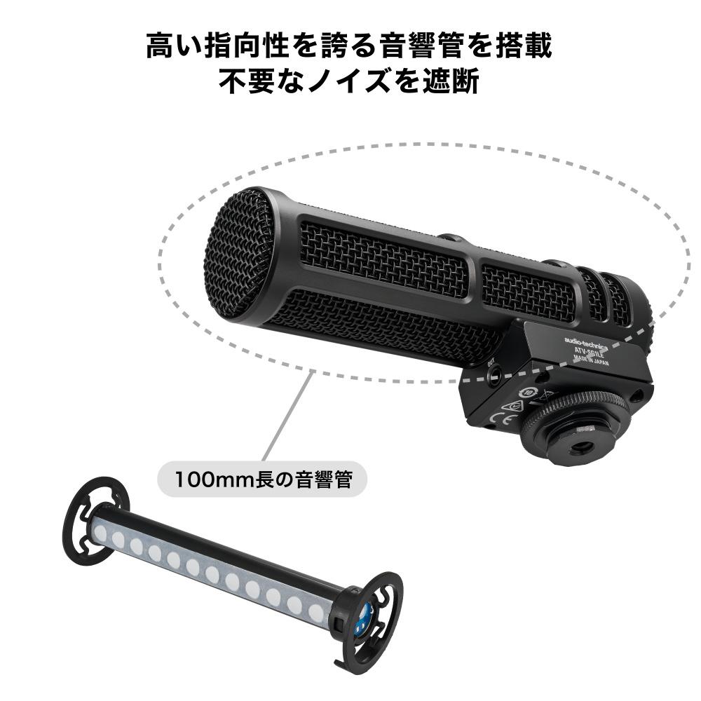 ■高い指向性を誇る100 mm 長の音響管が、不要なバックグラウンドノイズを遮断