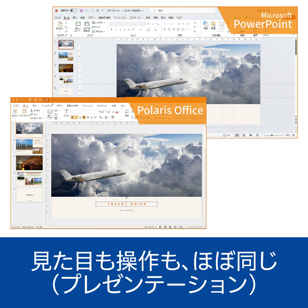 Microsoft Officeと見た目も操作も、ほぼ同じ