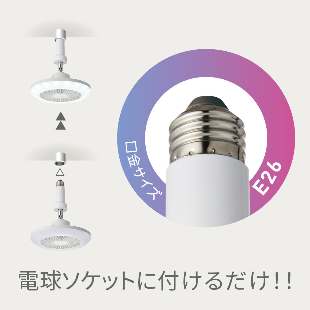 電球のソケット部から電源供給を受けるので、FANを回すための電源を別途にとる必要はありません。