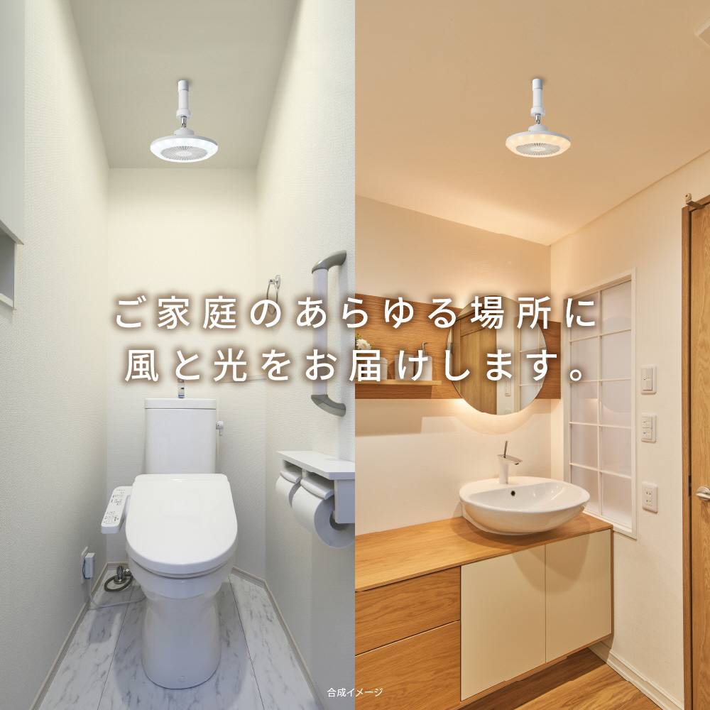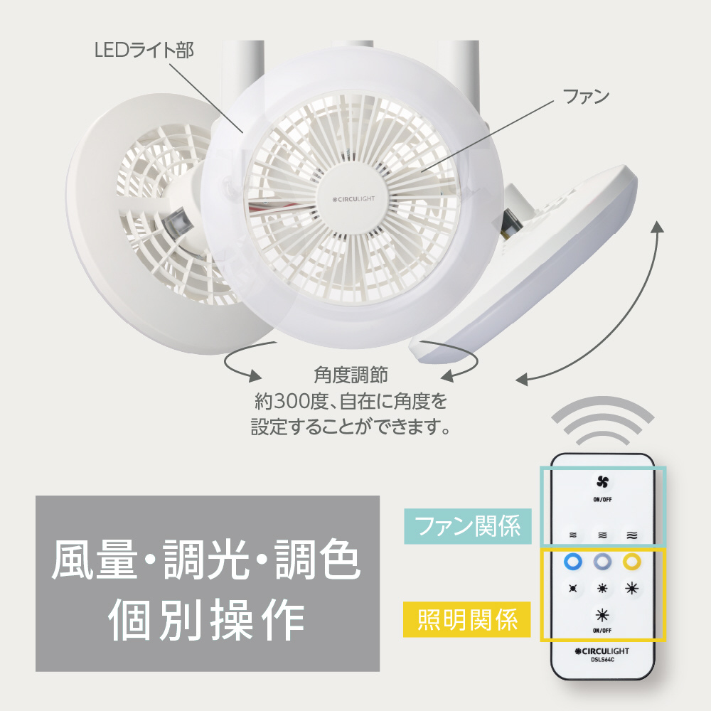 ●お好みに合わせて照明の色を変えられる「調色」モデル ●風量がしっかり多い、「カモメファン用羽根」を使用。 熱中症対策にも!