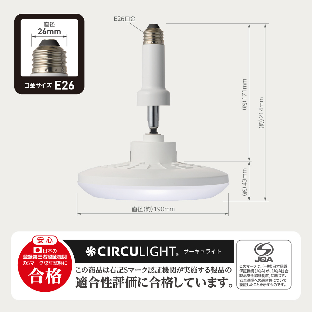 サーキュライト ソケット E26ソケット用 調色(電球色、昼白色、昼光色) 60W形相当 810ルーメン Kamome羽根搭載 [キッチン・洗面所・脱衣所・おトイレ・廊下・クローゼットなどにおすすめ]