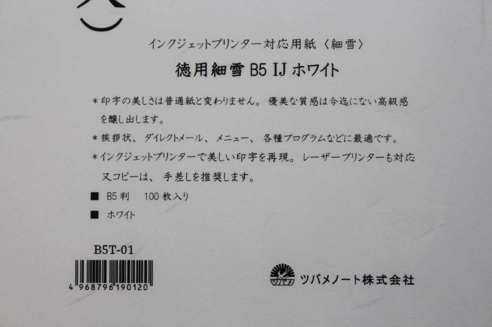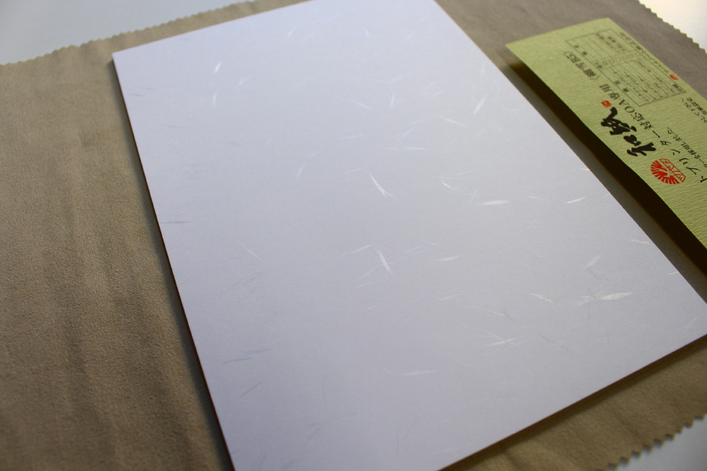 細雪(ササメユキ)という和紙です。表には雲(模様)を散らし、光の具合によって浮かび上がる高級感のある紙です。各種プログラム、ご挨拶、お礼状、メニュー表、冠婚葬祭のフォーマルな時の本文用紙としてご利用いただけます。