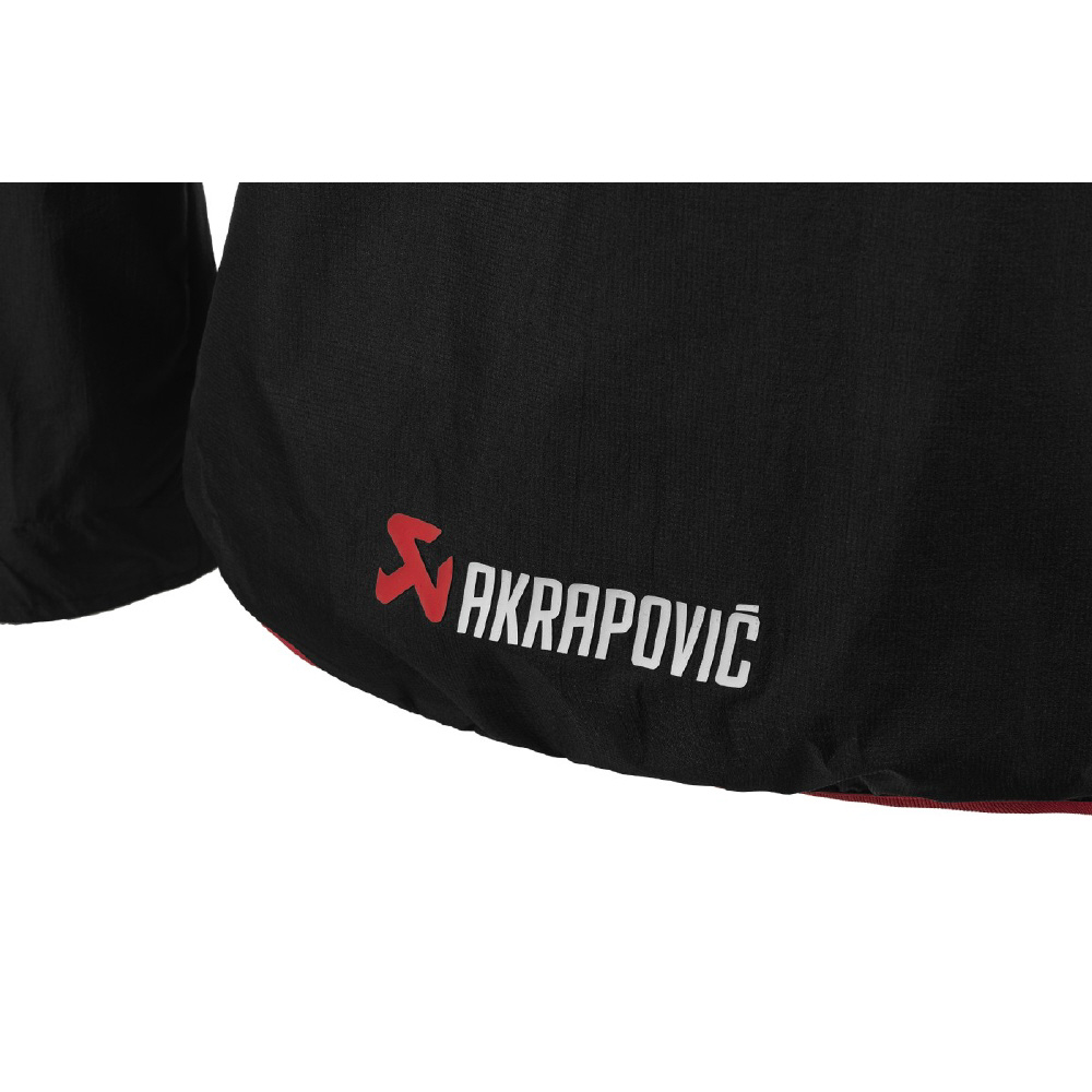 アクラポビッチ製のオフィシャルフード付きレインジャケットです。耐水圧10,000mmでありながら透湿効果も備えられ、雨・雪の日でも快適な着心地を保ちます。