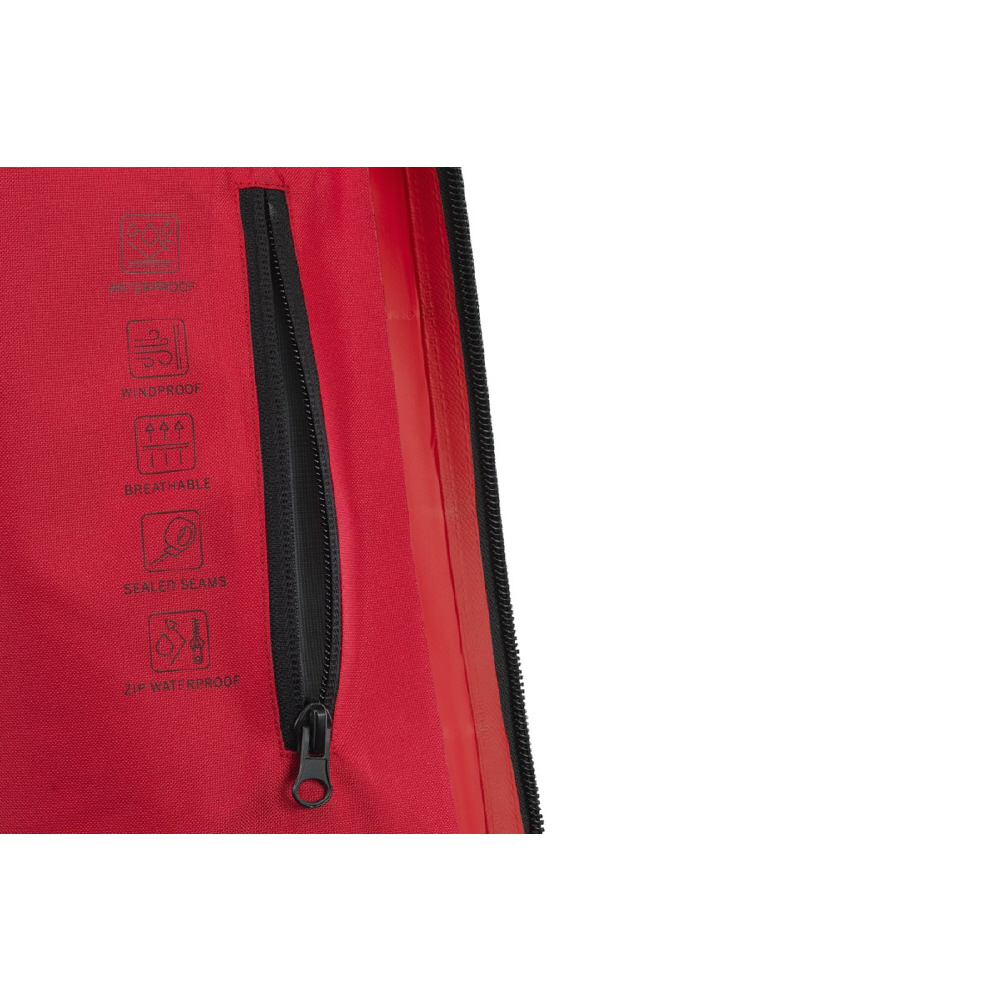アクラポビッチ製のオフィシャルフード付きレインジャケットです。耐水圧10,000mmでありながら透湿効果も備えられ、雨・雪の日でも快適な着心地を保ちます。