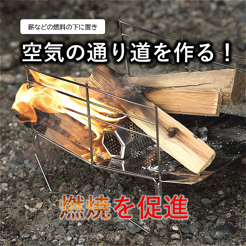 薪などの燃料の下に置き空気の通り道を作って燃焼を促進。
