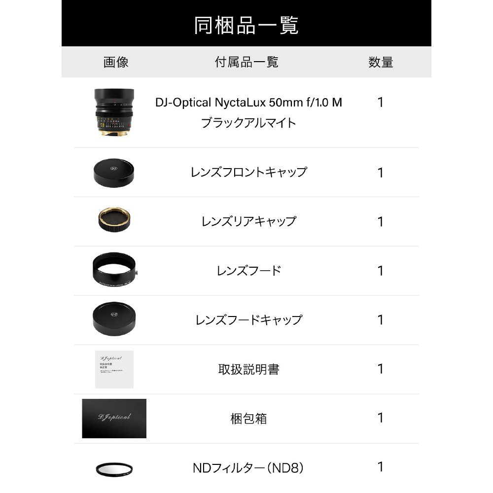 DJ-Optical NyctaLux 50mm f/1.0 Mマウント ブラックアルマイト DJ-50F1M-B