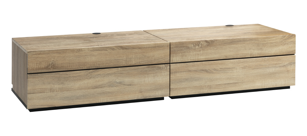 シンプルなストーンデザインと無垢板カラーのプレインモデル幅2000mmの~90V型対応テレビ台、ブレーカー付き3口タップ搭載