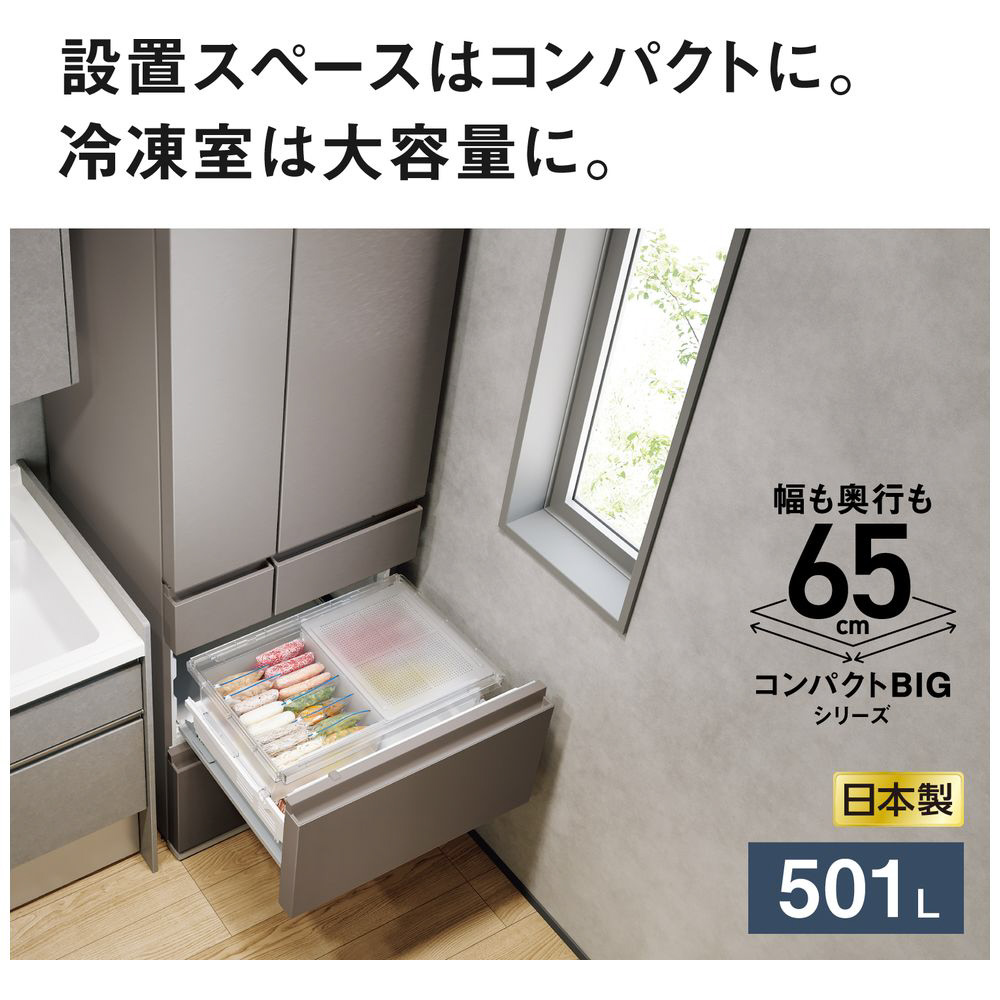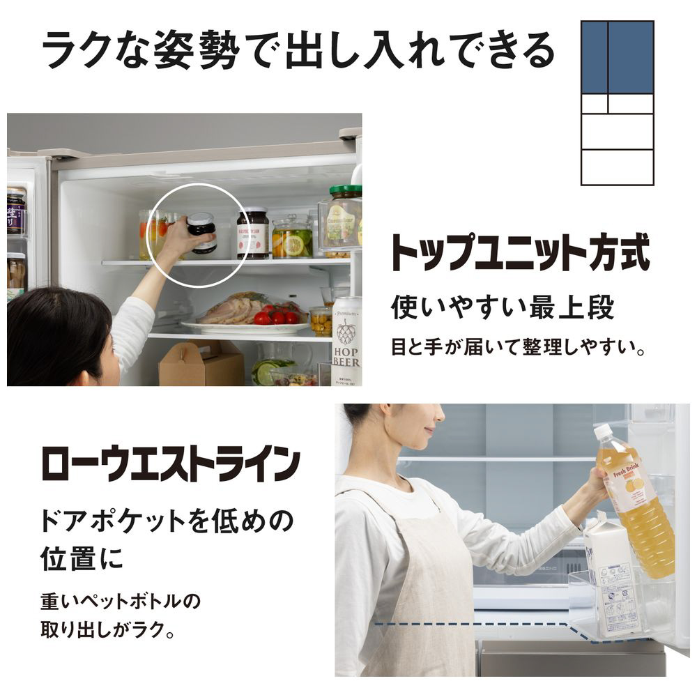 設置スペースはコンパクトに。冷凍室は大容量に。「霜つき抑制冷凍」搭載、ハイグレードモデル。