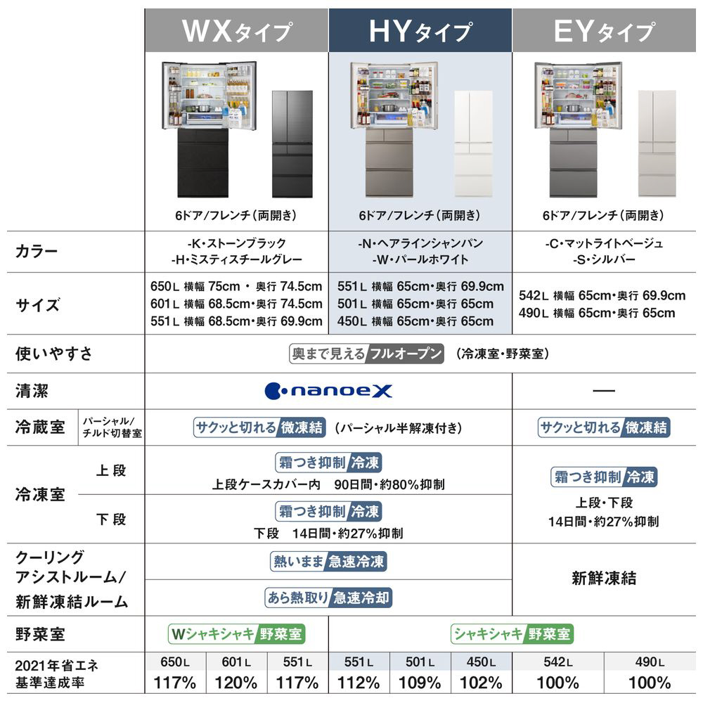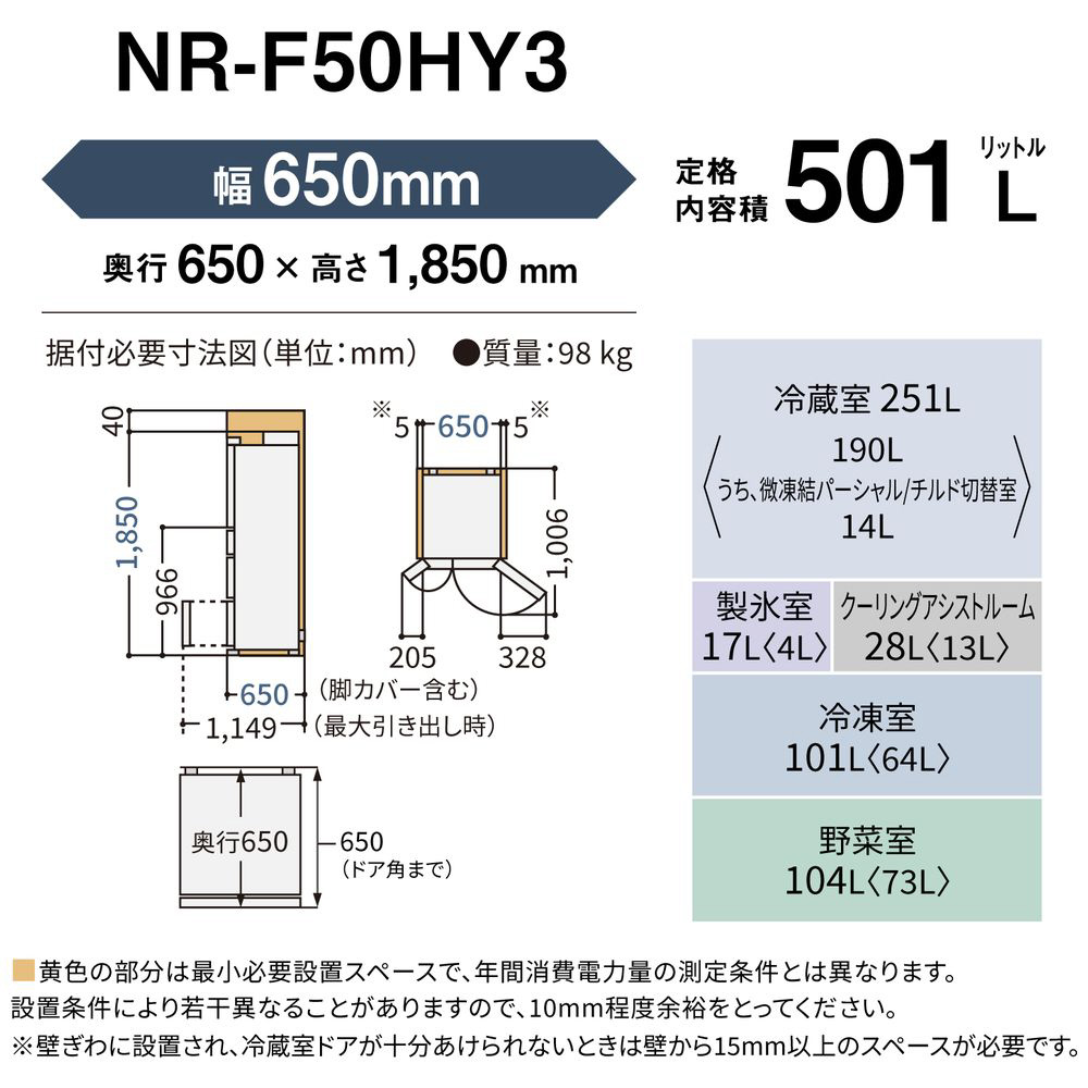 冷蔵庫 HYタイプ パールホワイト NR-F50HY3-W [幅65cm /501L /6ドア /観音開きタイプ /2026年]