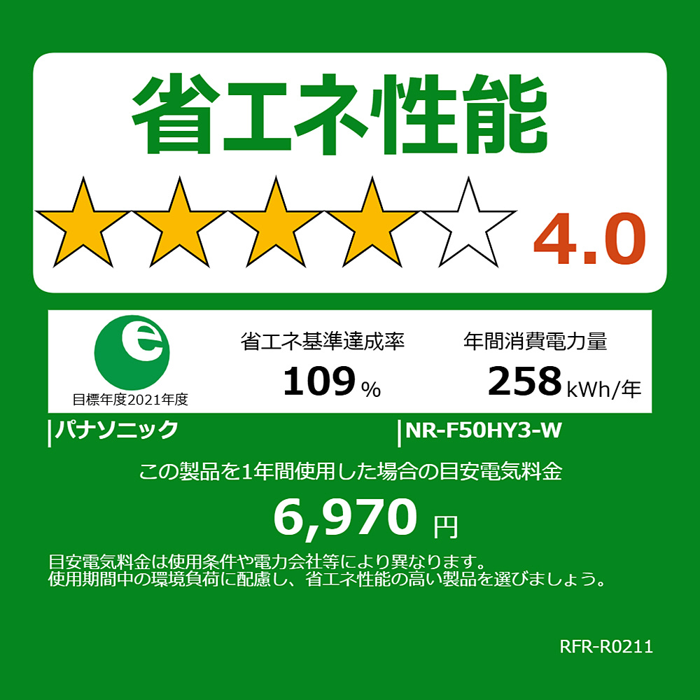 年間消費電力量 258kWh/年(JIS C 9801-3:2015)