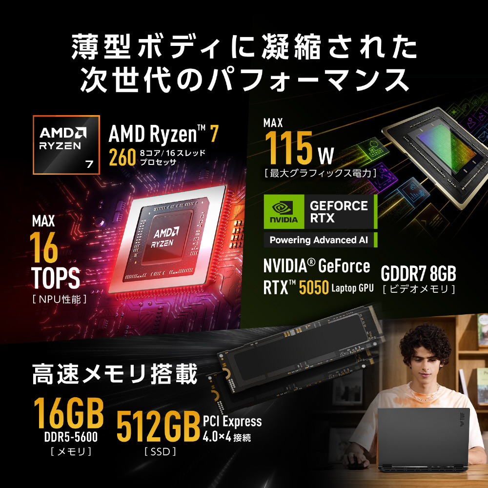 AMD Ryzen AI (NPU パフォーマンス 最大 16 TOPS)