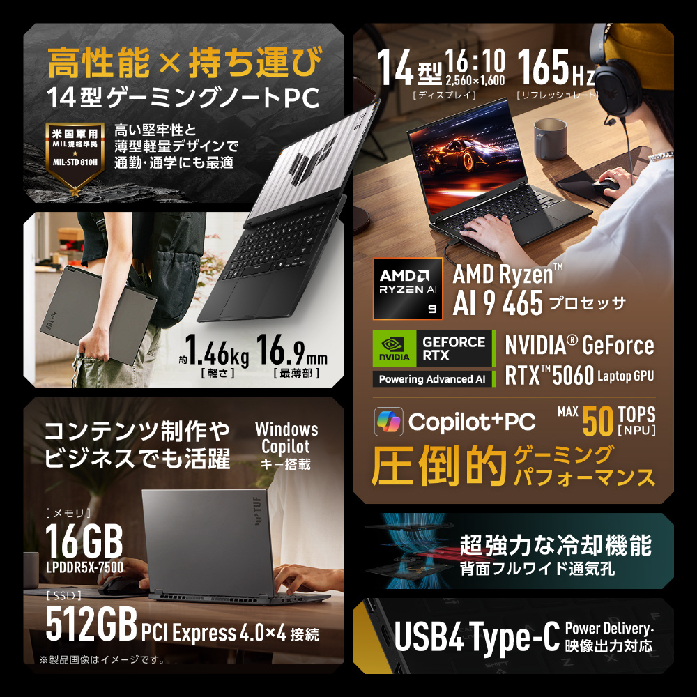 MIL規格に準拠したタフボディと優れた冷却性能を特長とし、PCゲームを愛するすべてのゲーマー、学生、ビジネスパーソン、クリエイターに