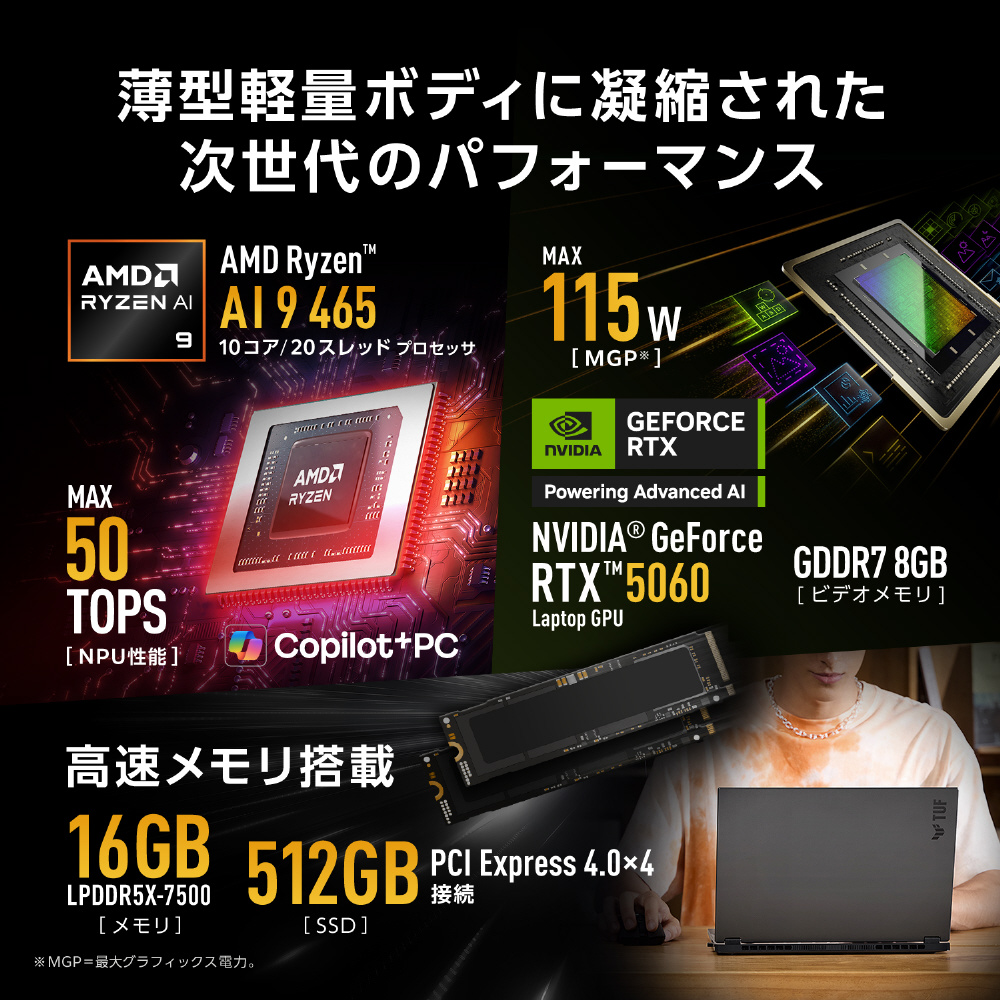 FA401GM-AI9R506016G ゲーミングノートパソコン TUF Gaming A14(RTX 5060) イェーガーグレー