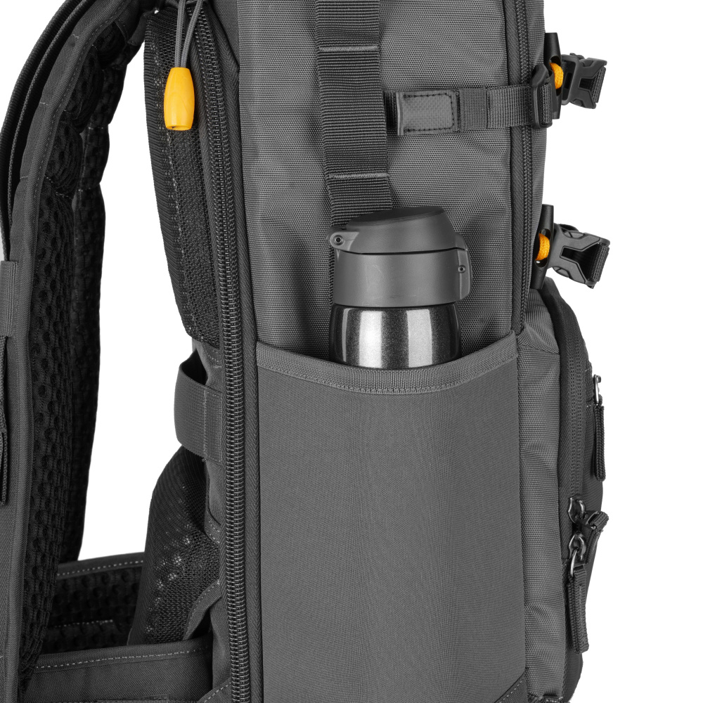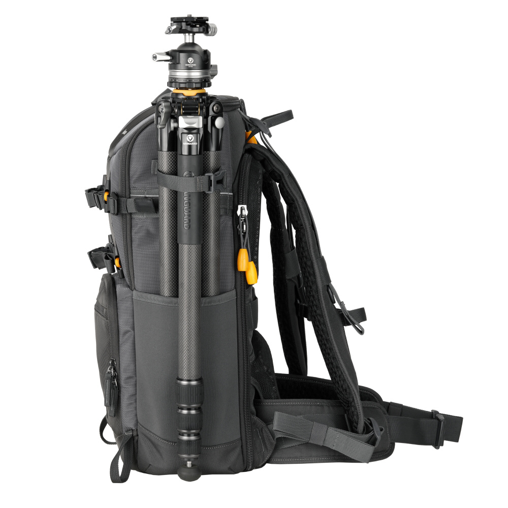 ALTA SKY 52は、20リットルの実用的なバックパックで、特に200-600mmの望遠レンズが装着された一眼レフカメラやフルフレームミラーレスカメラを持ち運ぶために設計されています。さらに、最大4つのレンズや日用品、そして16インチのノートパソコンも収納可能です。背面は完全に開く設計であり、前面の大きな上部開口部からは迅速にアクセスが可能です。