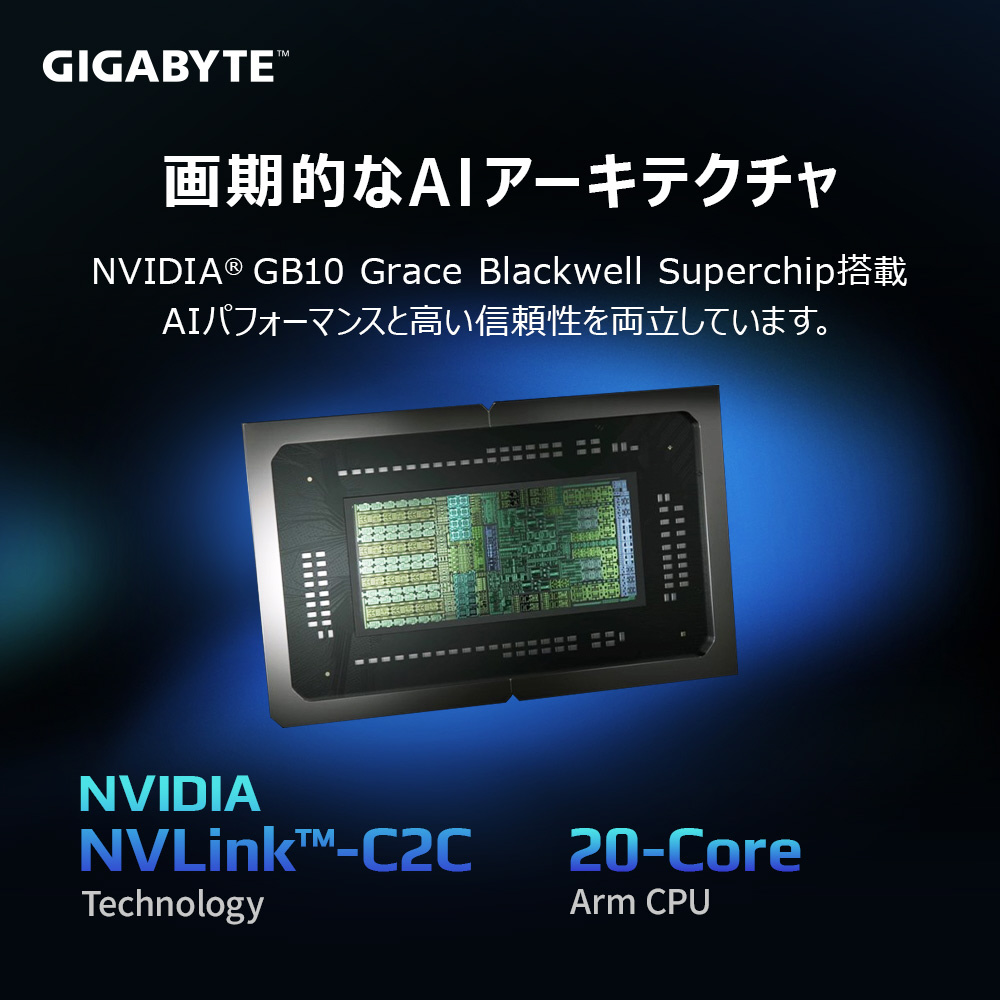 NVIDIA GB10 Grace Blackwell Superchip と第5世代 Tensor コアの統合により、圧倒的なAI 処理能力とミッションクリティカルな要求に応える高い信頼性を両立しています。扱いやすいコンパクトなフォームファクタに凝縮されたそのパワーは、開発者が創造性を最大限に発揮できる理想的な環境を提供します。