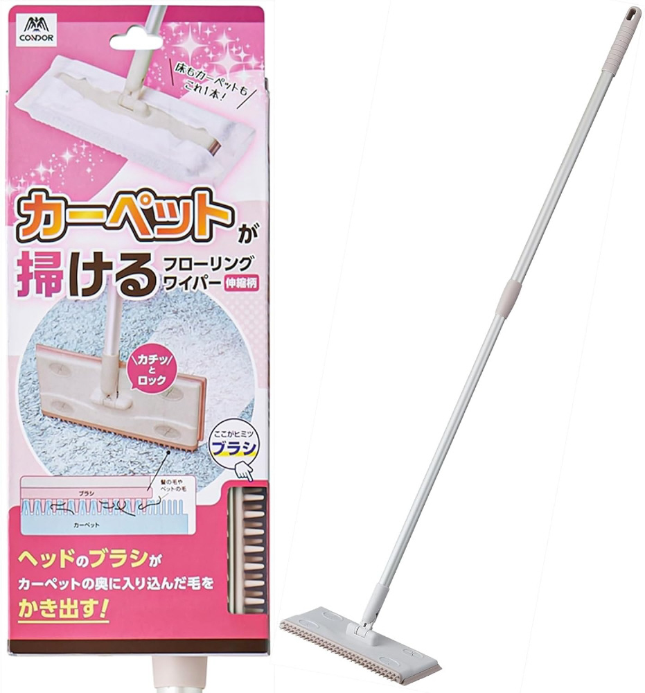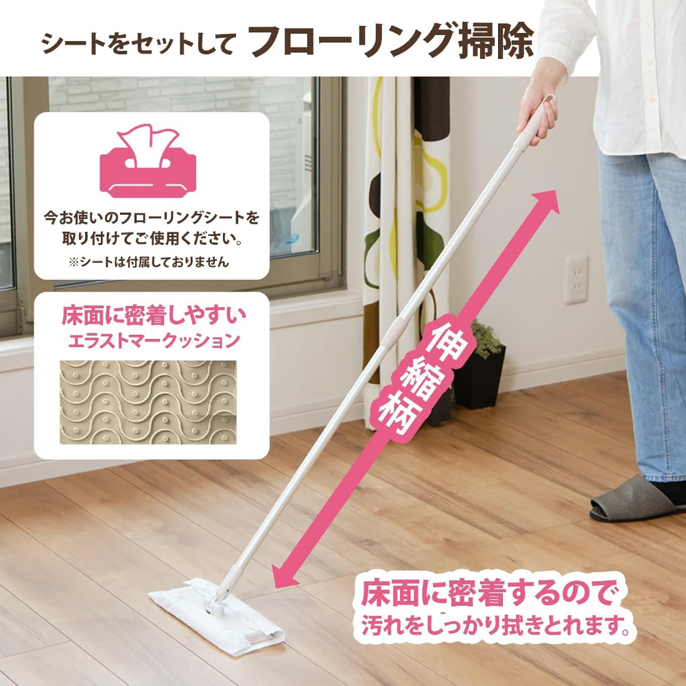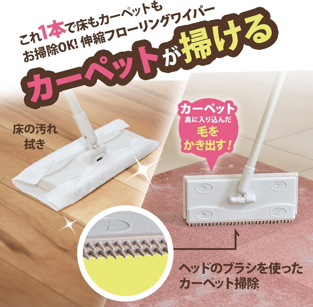フローリング、カーペット両方の掃除が1本で行えるフローリングワイパーです。