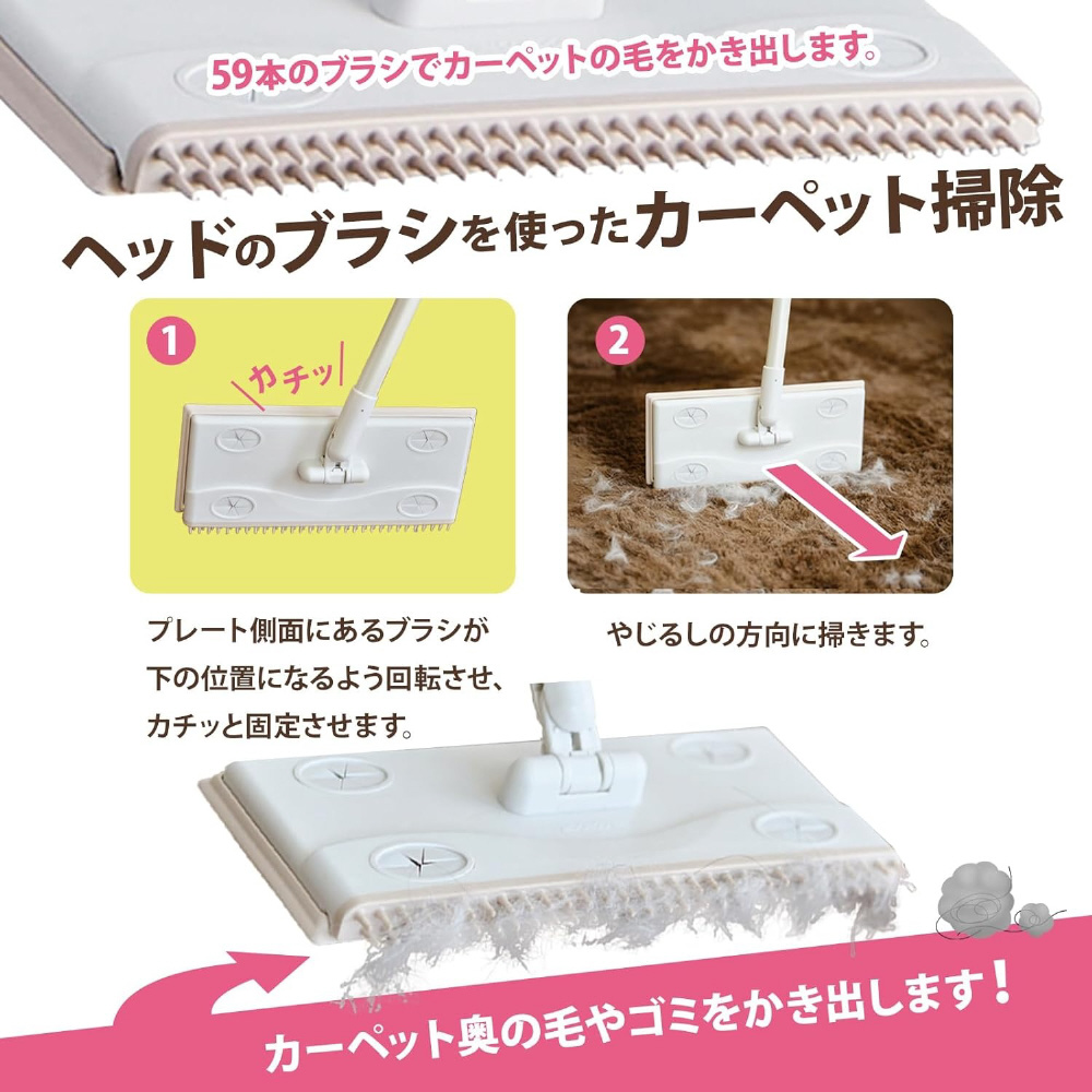 ヘッド部分の側面にエラストマー仕様のブラシを59本が付いており、カーペットの奥に入り込んだ髪の毛やペットの毛をしっかりとかきだします。