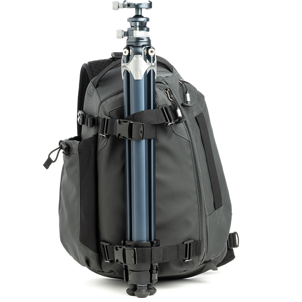 メイン開口部にはYKK製止水ファスナー(AquaGuardR)を採用。本体素材には、環境に配慮したPFASフリーの耐久撥水(DWR)コーティングを施し、シームレスなCORDURAR(コーデュラ)ナイロン製のベースおよびフロントパネルを組み合わせています。また、悪天候時に機材を完全に保護するシームシール処理済みレインカバーも標準装備しています。