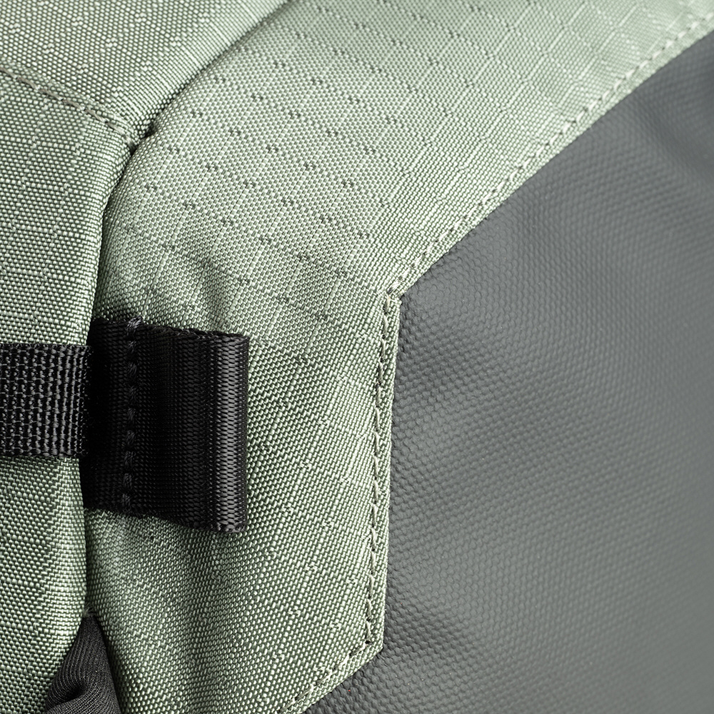 メイン生地に、耐摩耗性に優れたCORDURAR 915Dと、引き裂きに強い420D リップストップナイロンを採用。枝の引っかかりや岩場での擦れなど、アウトドア特有のリスクから機材を守ります。