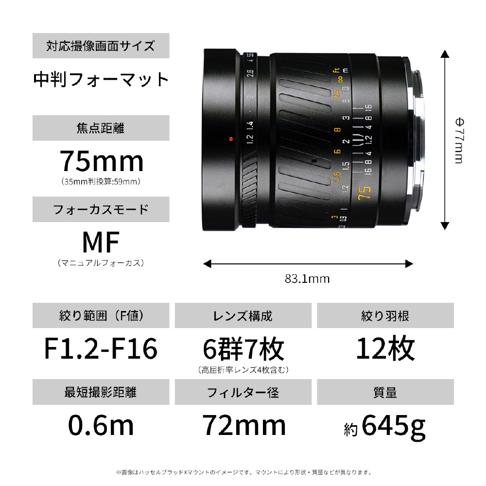 SG-image 75mm F1.2 ハッセルブラッドXマウント [単焦点レンズ]