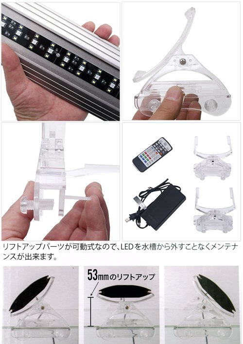 ●リフトアップパーツは可動式のため、LEDを水槽から外すことなくメンテナンスが可能です。